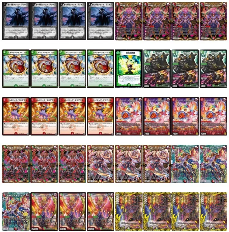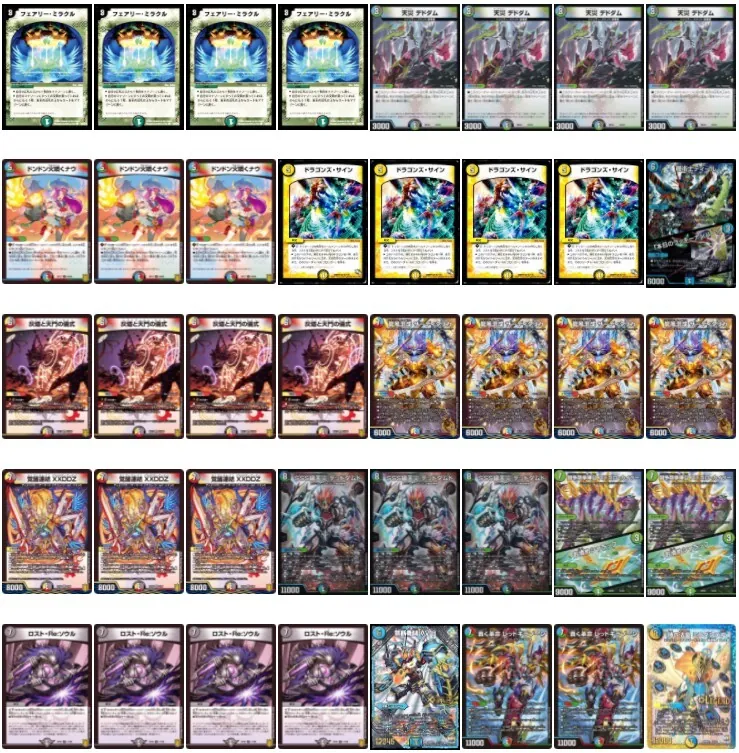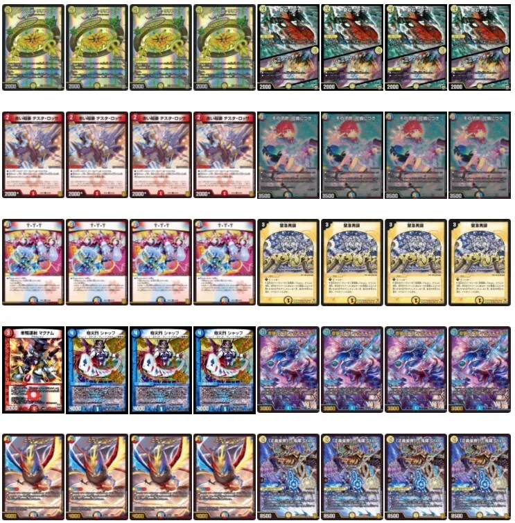 難点はデッキのギミックに光文明のカードを多く採用している関係で従来の型に比べて火文明が少ない点と、デッキのどこを削っても環境デッキのどれかに弱くなってしまう枠不足な点です。