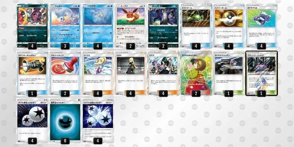 フーパブラッキーというデッキタイプのコンセプトは「《フーパ》を倒してくるポケモンを全て倒す」というもの。 そのため特に考えるべきポイントは《フーパ》を倒してくるポケモンの変化に注目することです。 特に以前からの変化として気をつけなければならないカードはこれら。