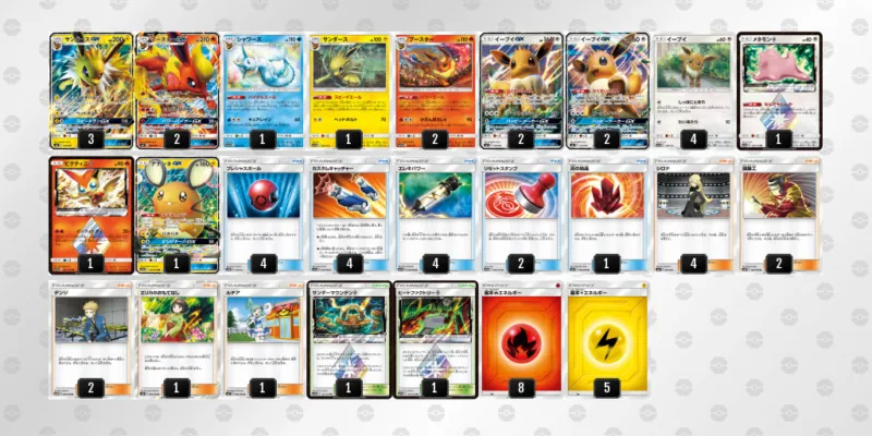 イーブイから進化するポケモンをメインにデッキを作ってみたいと思います。