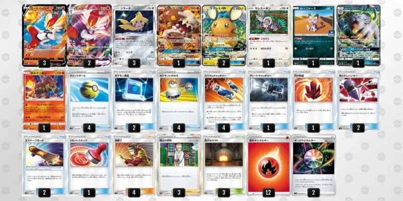 後攻1ターン目に攻撃できなかったときや《溶接工》を使えなかったときの保険として、ワザ「フレアスターター」でのエネルギー加速が強力。その後もワザ「こうねつばくは」でダメージを刻めるので、スキが無い。 ウルトラビースト、特に《ズガドーン》を意識しての採用。TAG TEAM GXや特殊エネルギーのついたポケモンに対しても有効なので、活かせるシーンは多い。