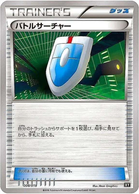 自分のトラッシュからサポートを1枚選び、相手に見せてから、手札に加える。 グッズは、自分の番に何枚でも使える。