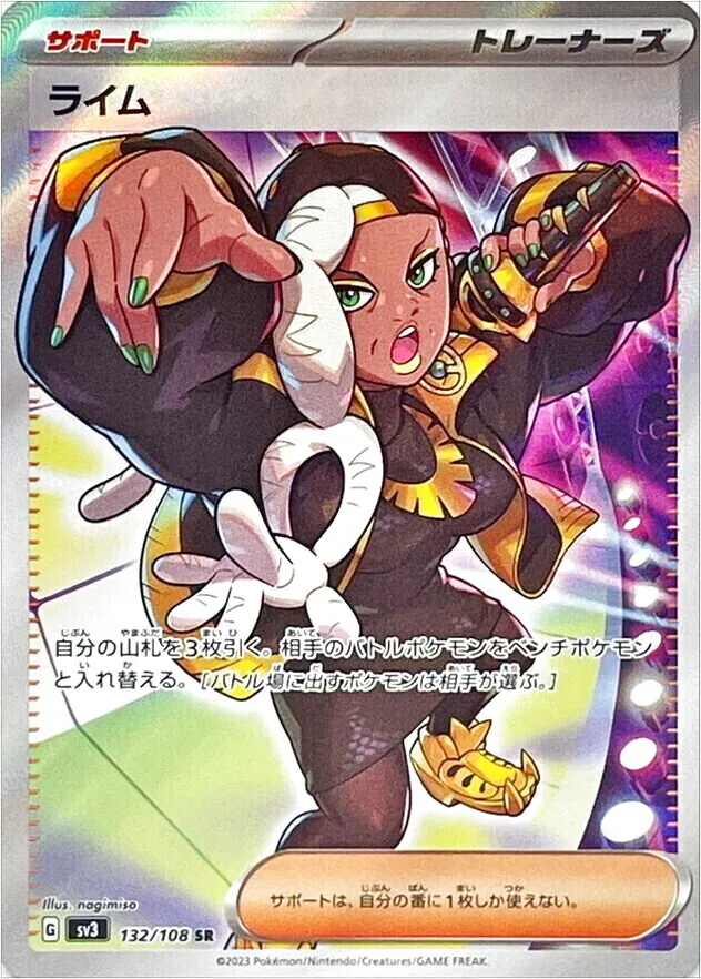 自分の山札を3枚引く。相手のバトルポケモンをベンチポケモンと入れ替える。[バトル場に出すポケモンは相手が選ぶ。] サポートは、自分の番に1枚しか使えない。