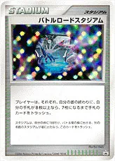 プレイヤーは、それぞれ、自分の番の終わりに、自分の手札が8枚以上なら、7枚になるまで手札のカードをトラッシュ。 スタジアムは、自分の番に1回だけ、バトル場の横に出せる。別の名前のスタジアムが場に出たなら、このカードをトラッシュ。