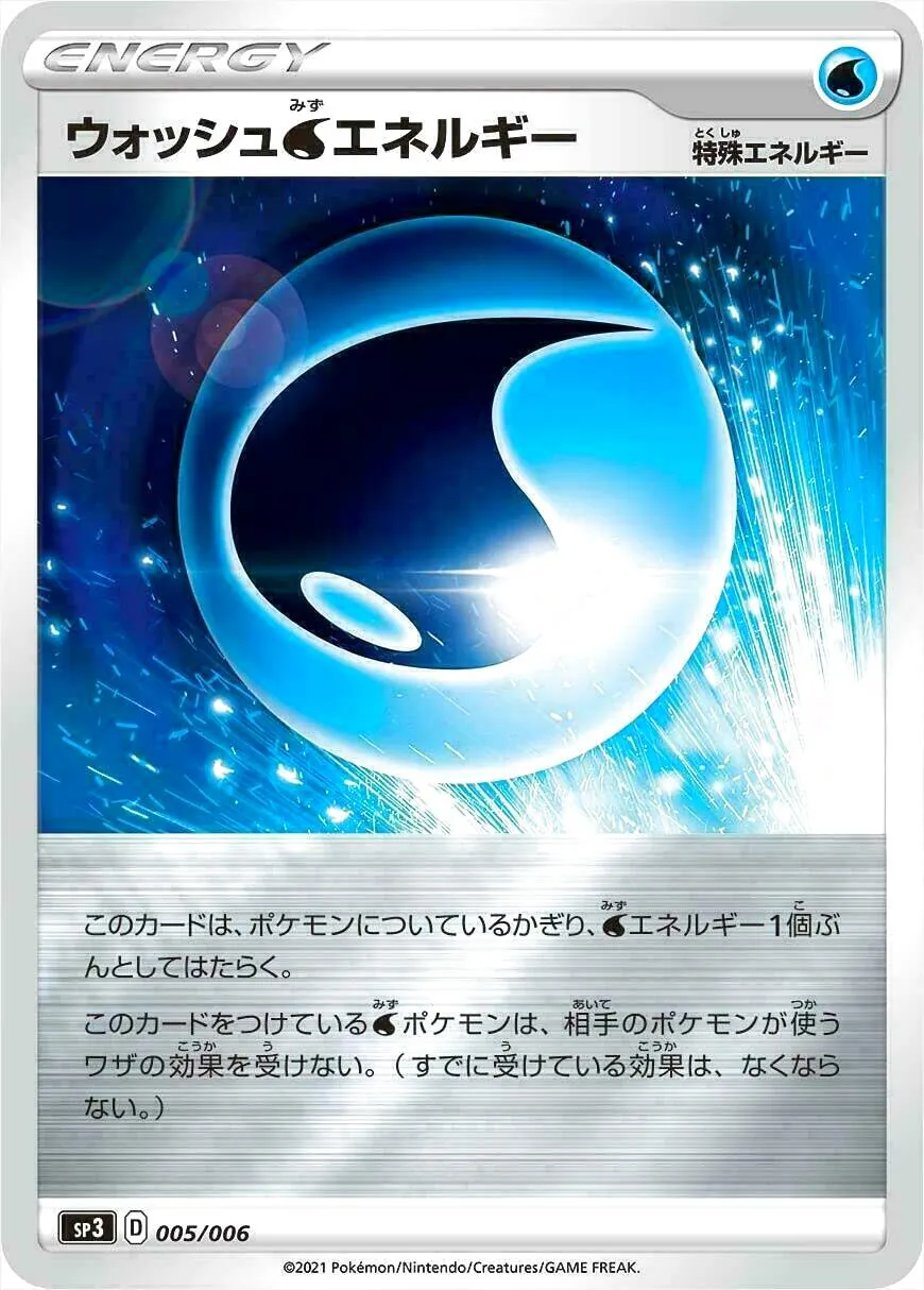 このカードは、ポケモンについているかぎり、水エネルギー1個ぶんとしてはたらく。 このカードをつけている水ポケモンは、相手のポケモンが使うワザの効果を受けない。(すでに受けている効果は、なくならない。)